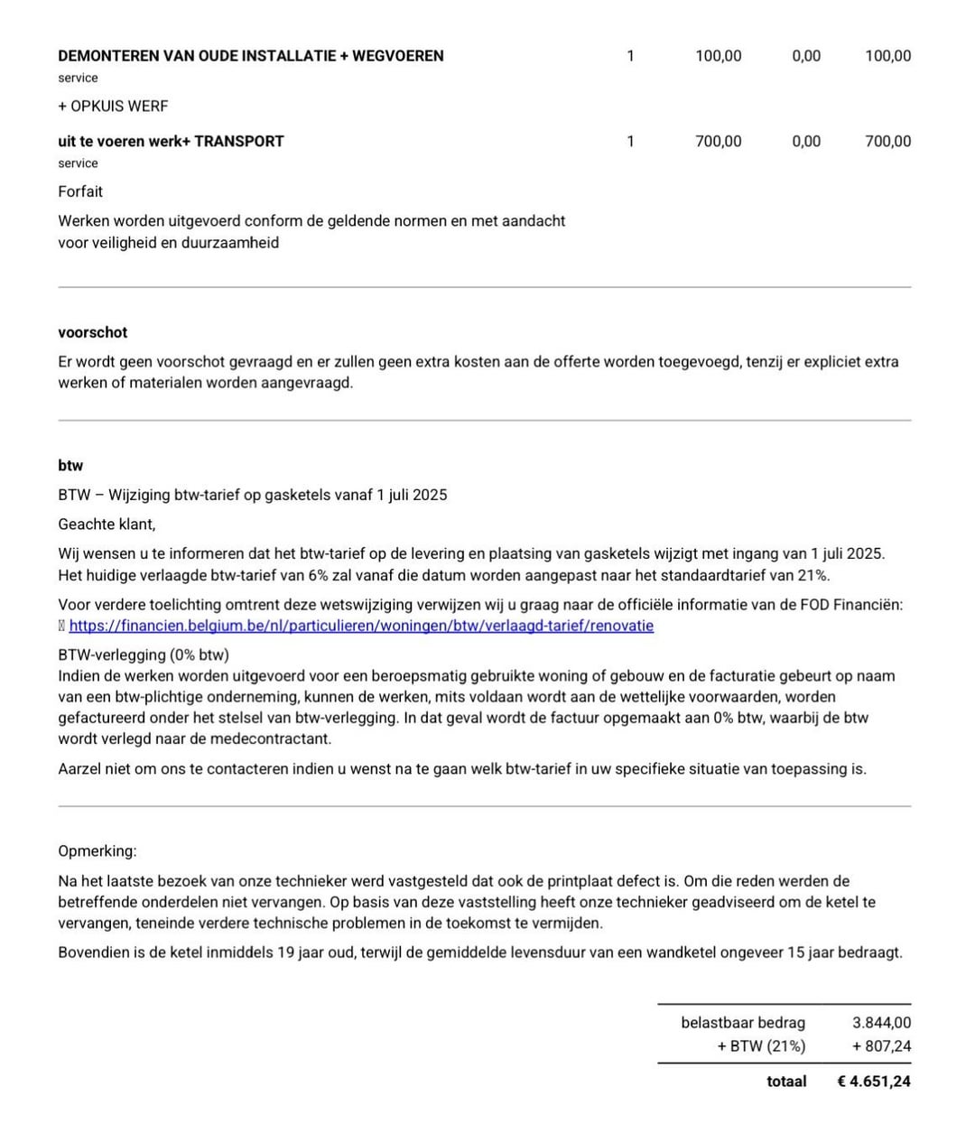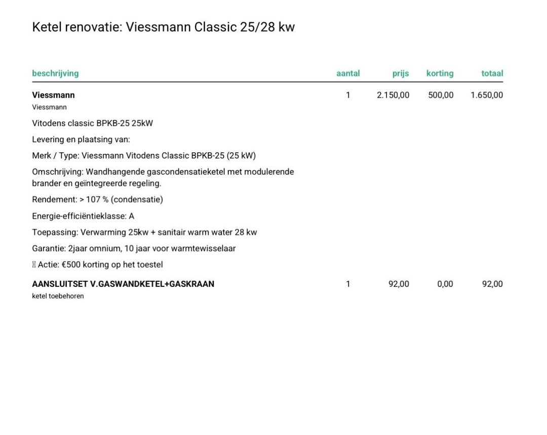 7. Ik heb verleden jaar € 3.500 betaald voor een Viessmann ketel. Bij mij was het wel gelukkig nog 6% BTW in plaats van 21%.