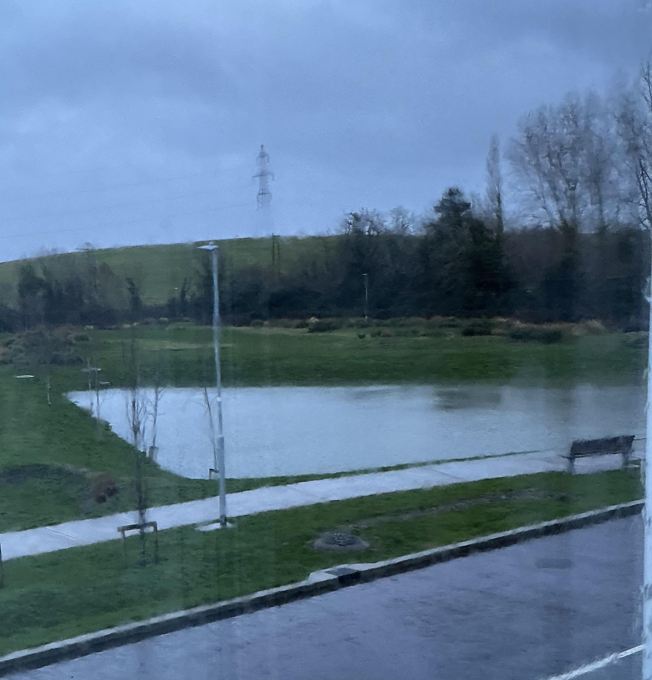 In Dublin hat es so viel geregnet, dass das Feld vor meinem Haus jetzt ein See ist