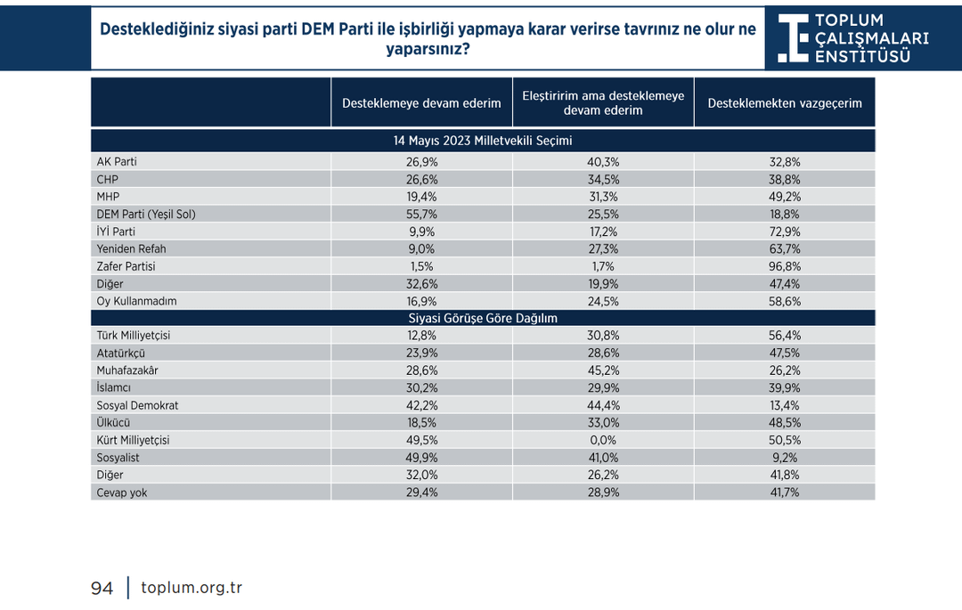 Eğer Dem Partisi, Dem Partisi ile işbirliği yaparsa Dem Partisi seçmeninin %18,8’i Dem Partisini desteklemekten vazgeçer