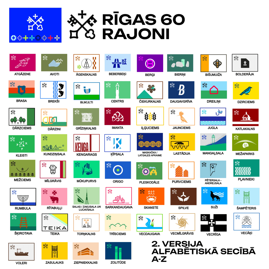 Für diejenigen, die das zum ersten Mal sehen: In der ersten Version habe ich als kreative Idee, die vielen Leuten gefiel, einzigartige Flaggendesigns für alle 58 Bezirke von Riga entworfen (Sie können es in meinem Profil sehen), und basierend auf den Vorschlägen einiger Leute habe ich eine zweite Version dieses sehr coolen Projekts mit ein paar Flaggenverbesserungen erstellt, die in alphabetischer Reihenfolge angeordnet sind, plus zwei neuen Bezirken und einer geografischen Flaggenkarte mit Riga.