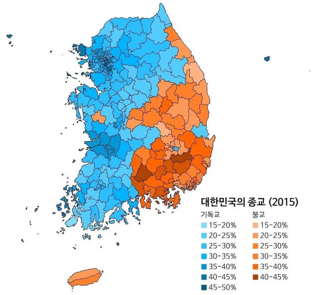 now put the non religion in the map. Korea is like 50%+ non religion.