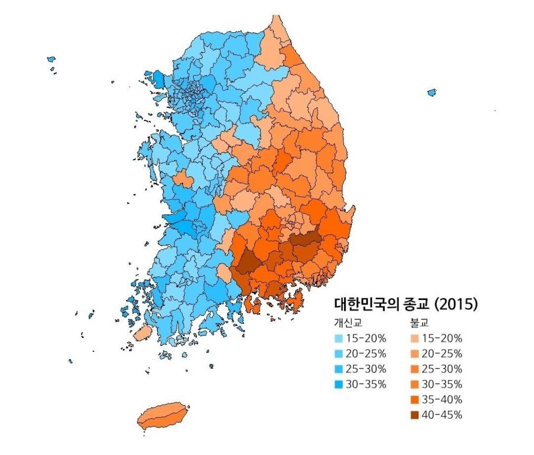 I wonder why Buddhism is concentrated in the gyeongsang provinces.