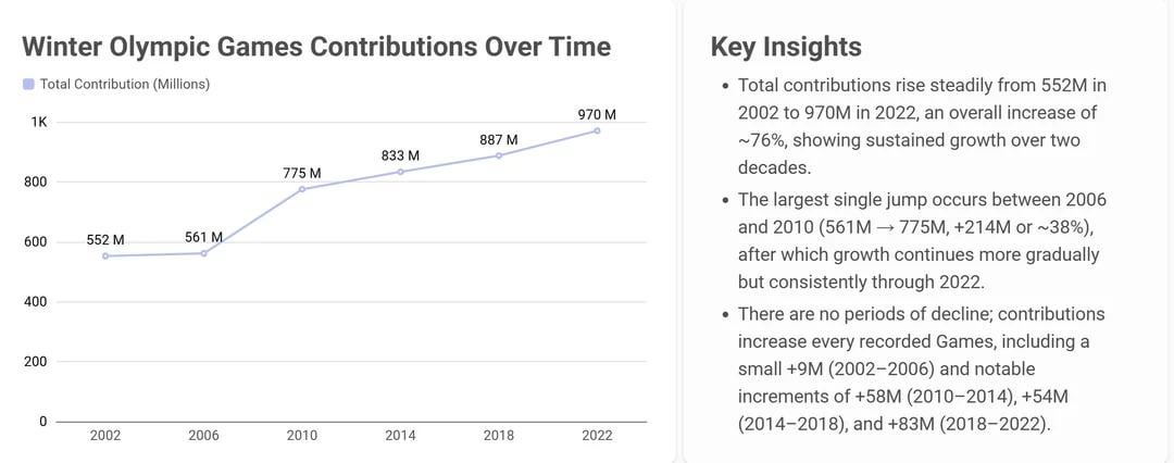 Ich habe dieses interaktive Dashboard erstellt, das das Finanzierungsmodell des IOC visualisiert und zeigt, woher das Geld kommt und wie es während der Olympischen Spiele umverteilt wird.