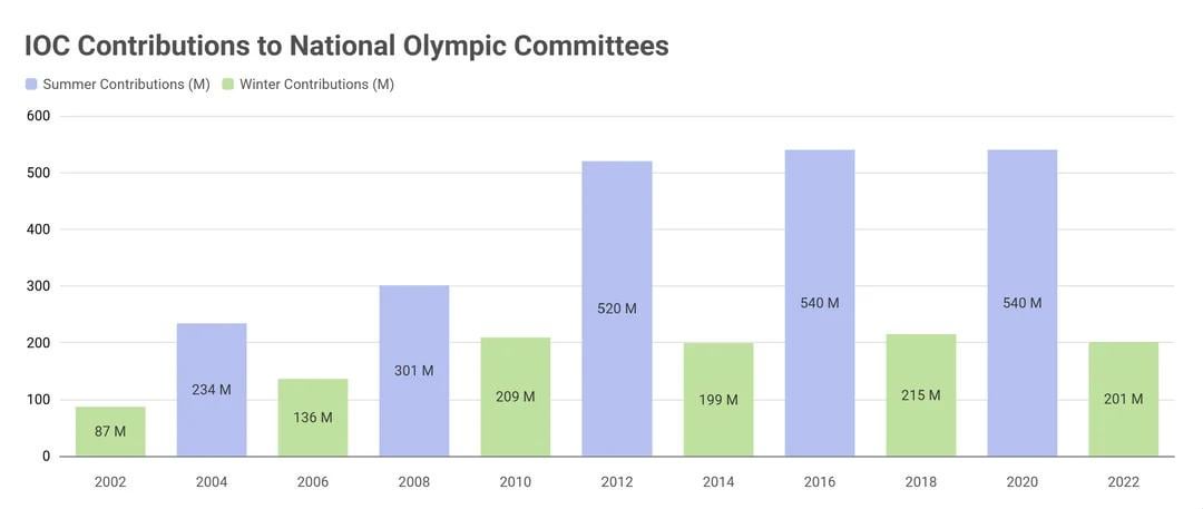 - Die Finanzierung der Olympischen Sommerspiele ist durchweg höher als die der Winterspiele