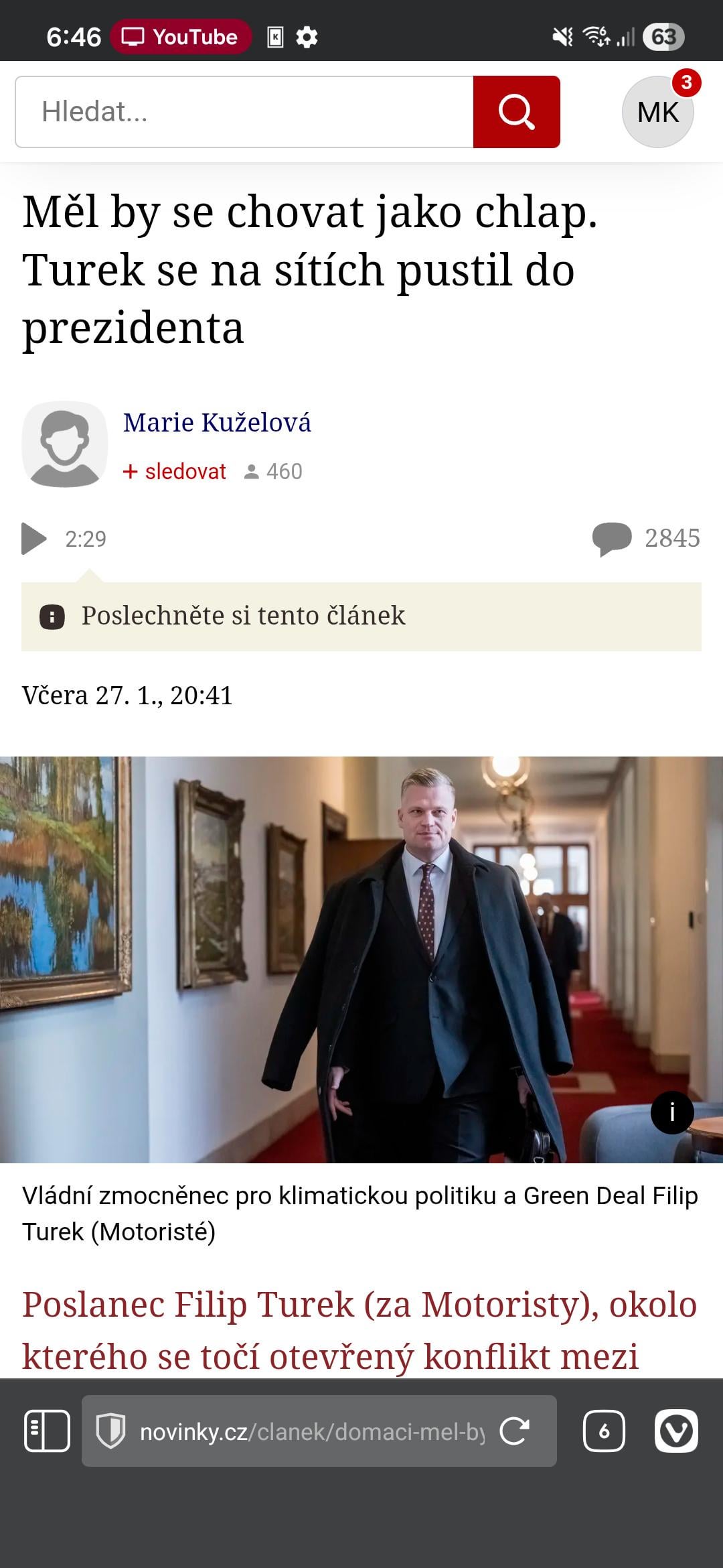 Včera mi to taky nepřišlo tak hrozný, ale dneska jsem si to znovu přečetl a došlo mi, že Macinka podmiňuje směřování zahraniční politiky celého státu tím, jestli bude nebo nebude jmenován Turek. On neřekl jenom, že prezident nebude mít na nic vliv. Však uvidíme dneska co udělá za ostudu s Ruttem.