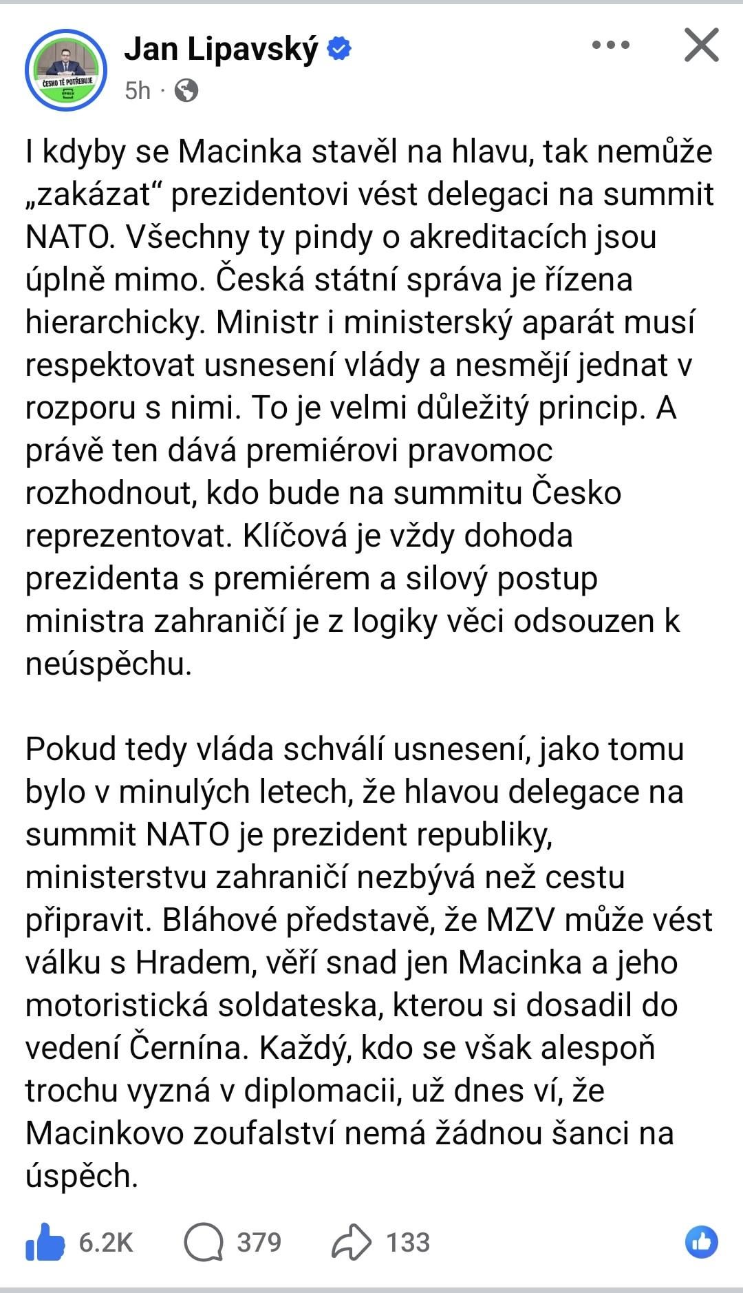Ahojte lidi! No tak na summit NATO pojede Turek místo prezidenta, protože jako fakt prezident nedodržuje tu ústavu, jak pan ministr Macinka říkal. Já to vím, jelikož jsem si včera za 69 tisíc koupil ústavu ve formě audioknihy, kterou namluvila Bohdalová a pro vás jsem ji celou sjel před večerním Azkvizem, který rušit nebudu, nebojte. On kdyžtak pojede na nové AgrofertTV, kterou já nevlastním. Jo a ten Fiala, co si to jako dovoluje na facebooku psát něco o mafiánských praktikách? Kampelička, dozimetr, pampeliška, svetr, já jsem pro vás udělal to co nikdy Petr!