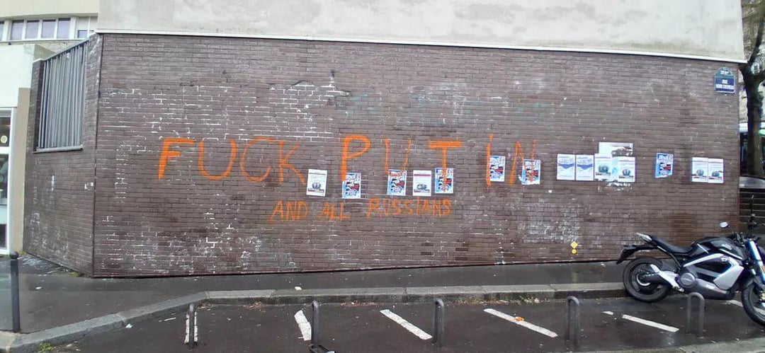 Ironically, the gallery is showing „anti-war art exhibits“. Maybe, they can carry the window with the graffiti on it inside and make an exhibit out of it as well 😁