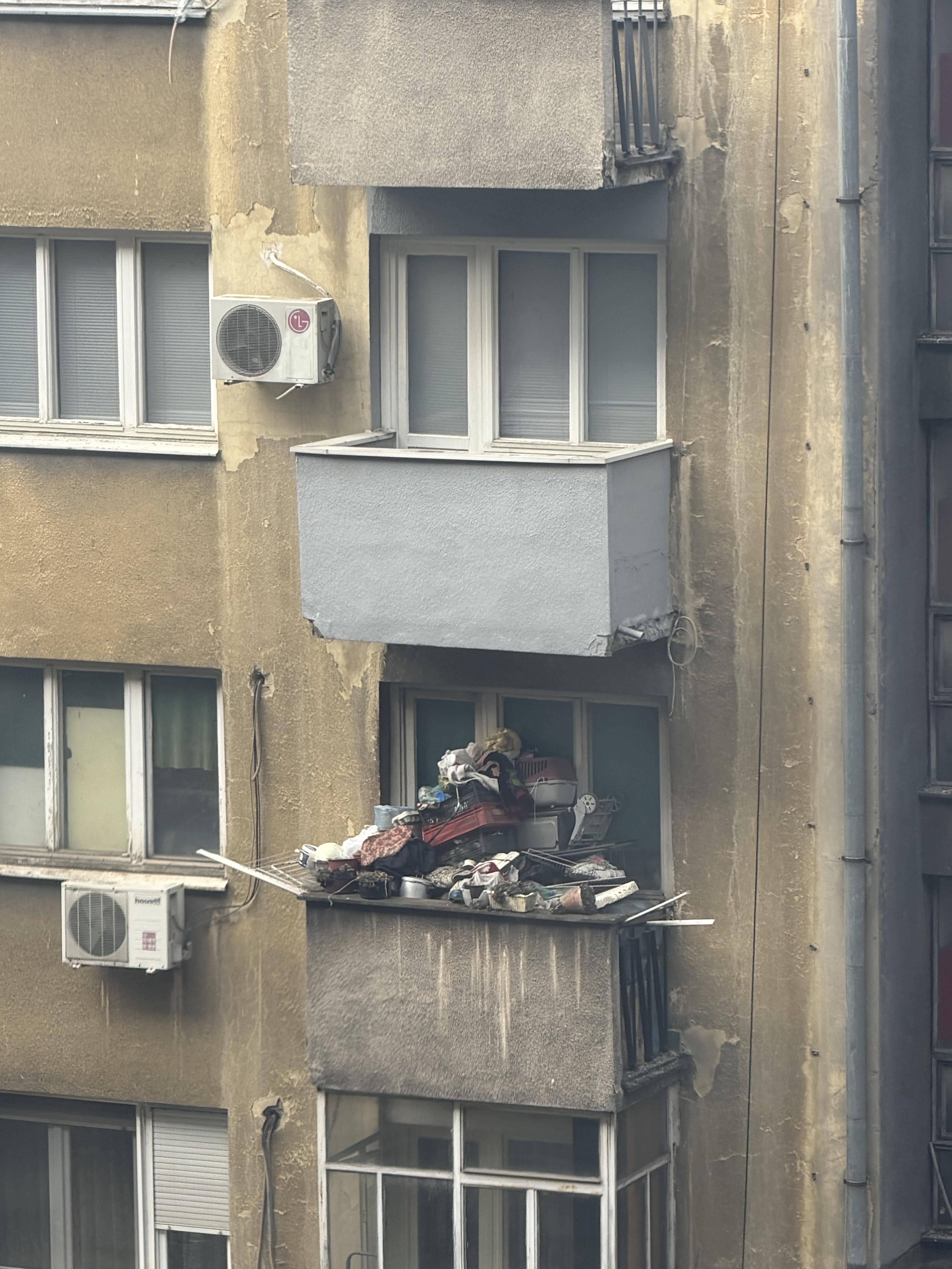 Pa skoro da je ovakva terasa bila kod mojih, doduše stvari se nisu baš prelivale preko ograde, nije ih bilo toliko, ali recimo – stari šporet (ako novi crkne – i tako 20 godina), stara veš mašina (Candy Superautomatic 72 ili tako nešto – jbg, ne prave se takve više), 2 kutije pločica od renoviranja kuhinje (za svaki slučaj – ako se neka slomi) … i tako svaka stvar „za svaki slučaj“, „ako zatreba“, „zatrebaće“ … i ono čuveno – kada jednom u 1000 godina nešto tako zatreba – e onda: