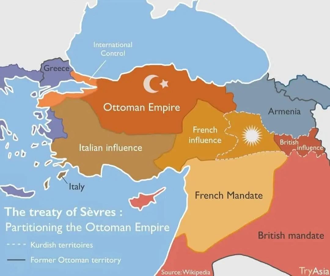 In Turkish education, the 1st map is never shown, its only the 2nd map with the ‚influence‘ parts missing, making it seem like italy, france etc was annexing all of that. Pretty interesting