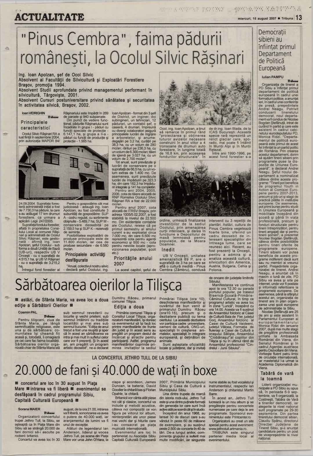 Ce vremuri, cand 90% din pagina era dedicata unui pin, sărbătorii oierilor si unui concert. Acum 90% e politica si chestii asociate.