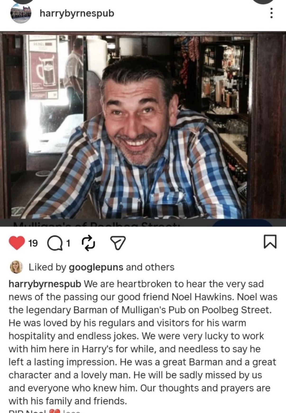 Very sad, we dropped in over xmas and he was serving us. Sound man, RIP Noel!