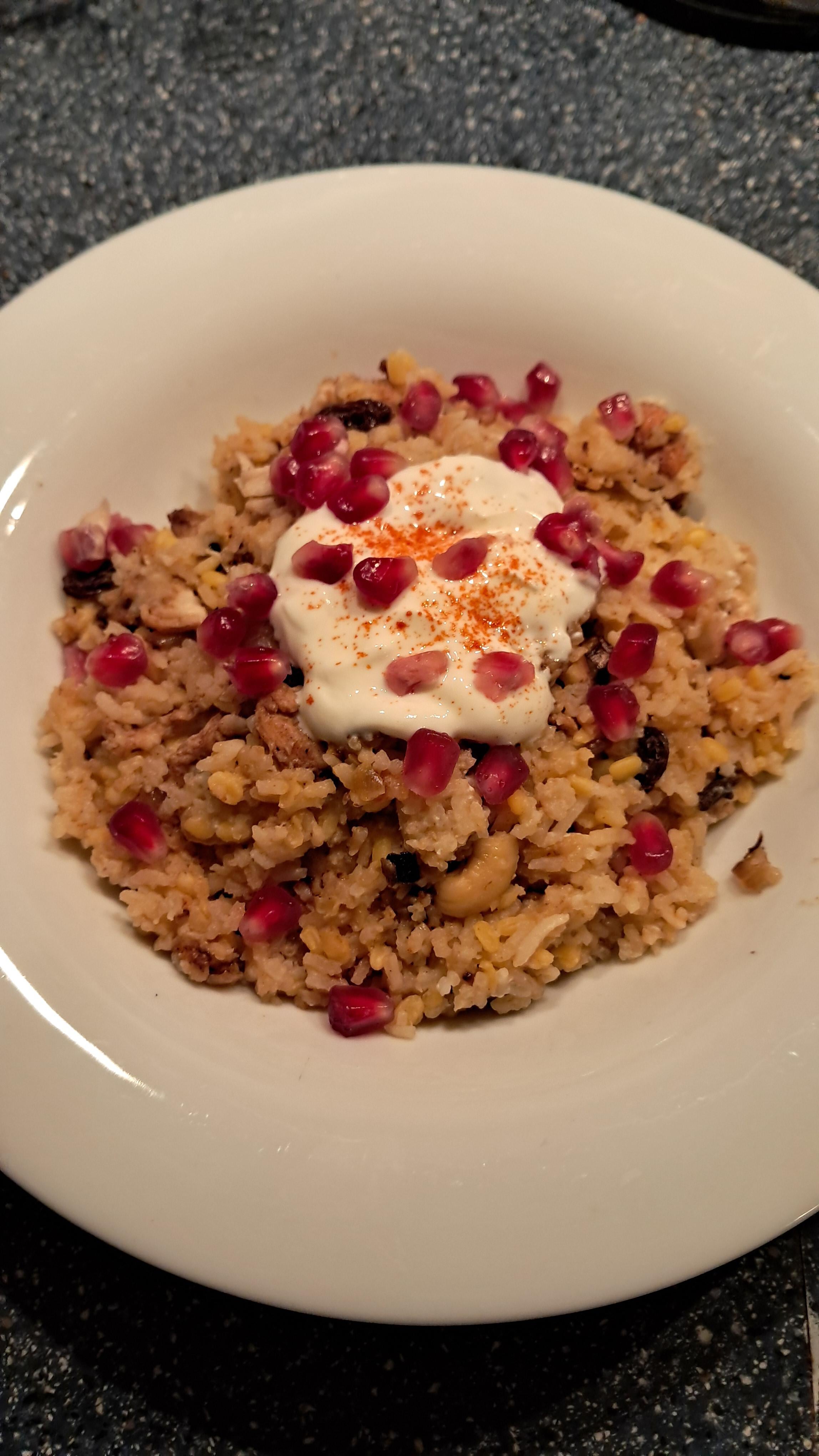 Ein bisschen Joghurt und Granatapfel habe ich hier noch zum servieren dazu genommen.