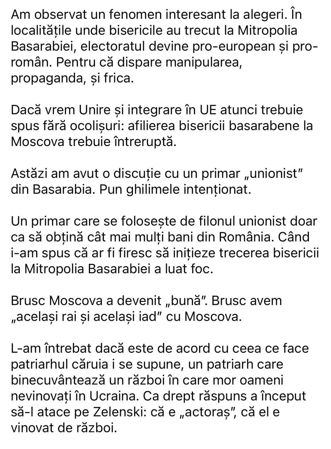Pâinea asta unionistă de dragul puterii e cam aceiași pe care Simion o mănâncă de ceva timp. Nu zic că nu a fost cândva sincer, dar e fix cum descrie domnul aici.