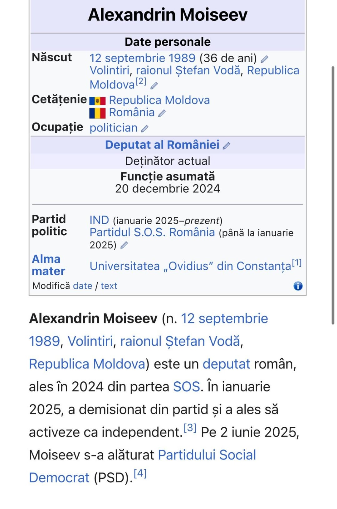 Il cunosc personal pe Alexandrin din 2009, inca de atunci cand se lupta in sat cu unchiul care era primar de la PSRM 🙂 , a fost unionist de atunci si ma bucur ca isi pastreaza valorile . De traiectoria politica din Romania nu cunosc nimic, dar acum cum am citit chiar sa descurcat bine 🙂 , sa intre in pe listele la un „partid“ noname si dupa sa isi vada de treba , bravo lui. 🙂 Acum ca sa a trecut la PSD – so dus si omu unde is mai multi din zona in care locuieste ….