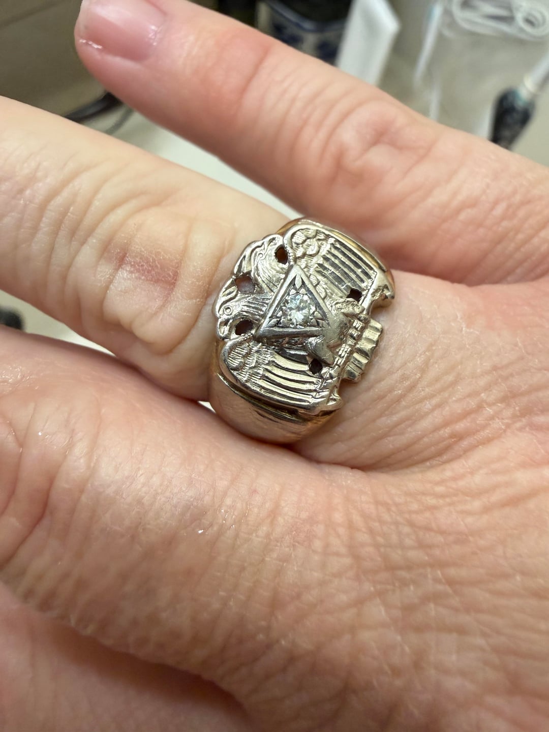 Mein Großvater starb im Alter von 93 Jahren. Er sagte, er sei ein Pole aus der polnischen Kosakenregion. Während Covid verstorben. Er und seine 5 Brüder erhielten 4 Purple Hearts. Ich möchte den Ring auf die richtige Art und Weise tragen, um ihn zu ehren. Danke.