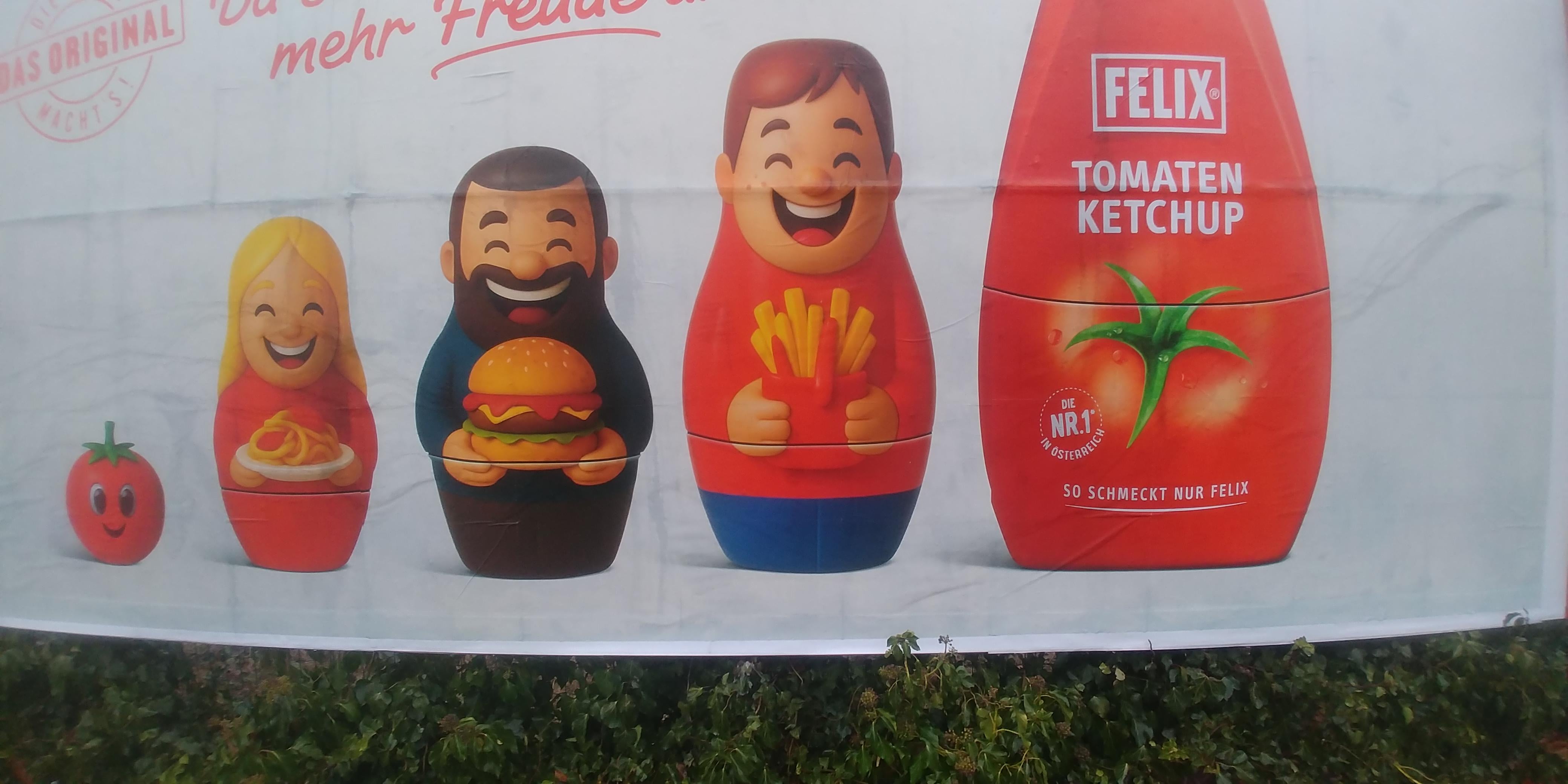 Das teuerste scheiß ketchup verwendet die billigste Werbung, die manbekommen kann. Die Lebensmittelindustrie ist einfach zu 75% ein einziger Scam.