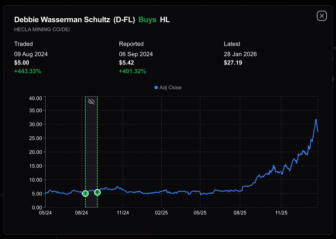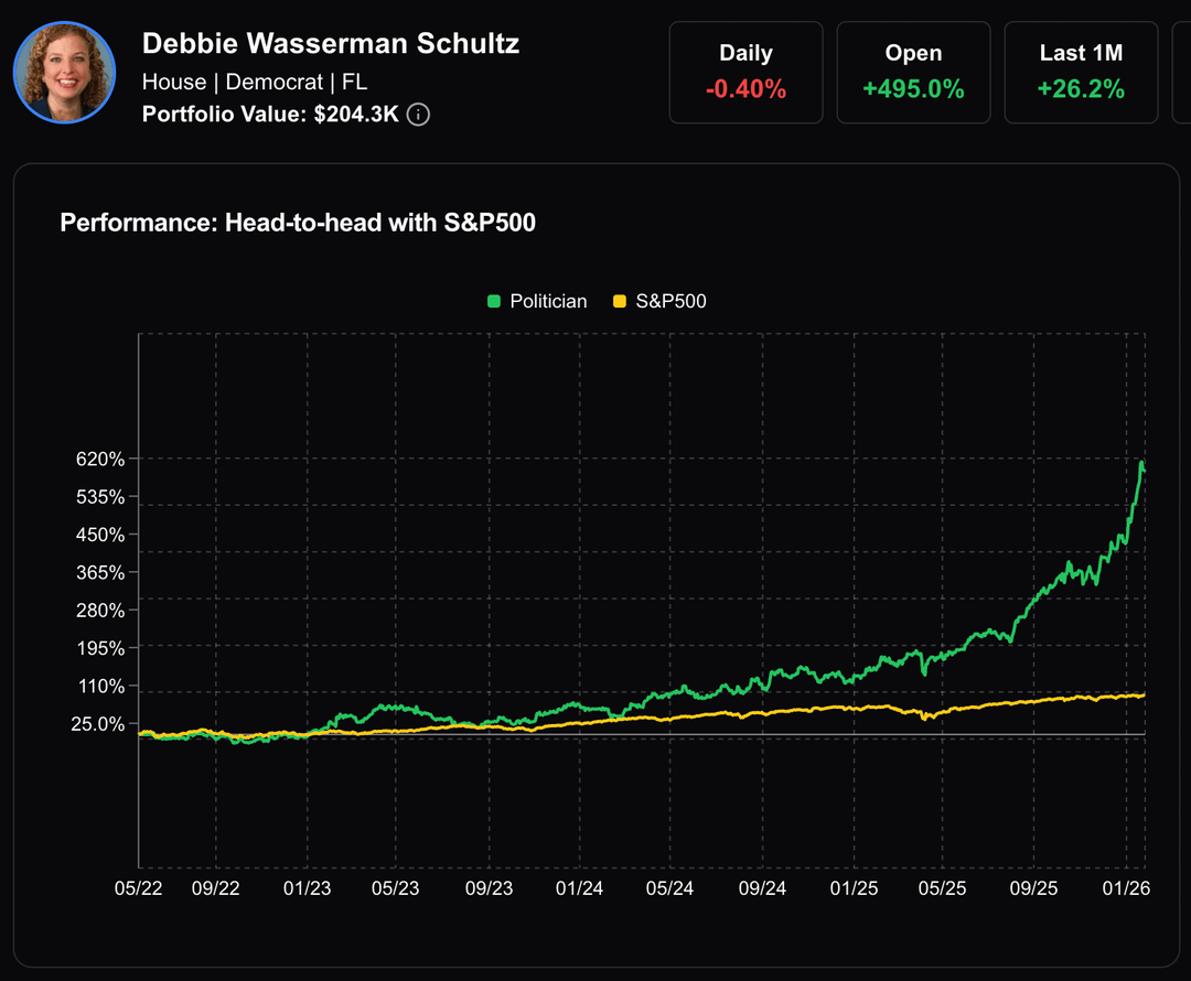 Es wird geschätzt, dass die Abgeordnete Debbie Wasserman Schultz (D-FL) mit ihrem bergbauorientierten Portfolio einen Gewinn von 495 % erzielt hat