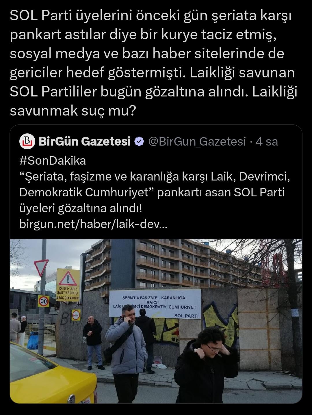 seriat isteyenler de gozaltina aliniyor bi bizden bi sizden aglamak yok