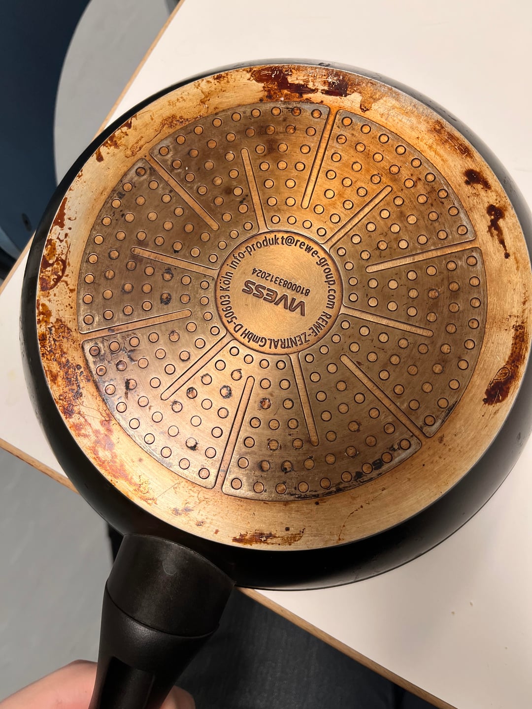 Das eingebrannte fett auf dem Boden ist mir immer relativ egal. Ist halt ein Gebrauchsgegenstand.