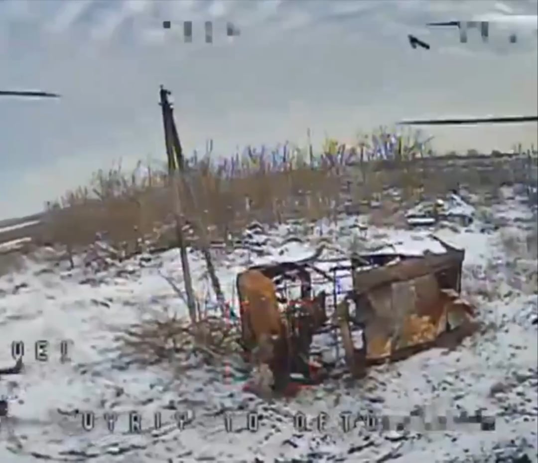 Russischer Infanterist versucht, mit einem Becher eine ukrainische Drohne abzuwehren
