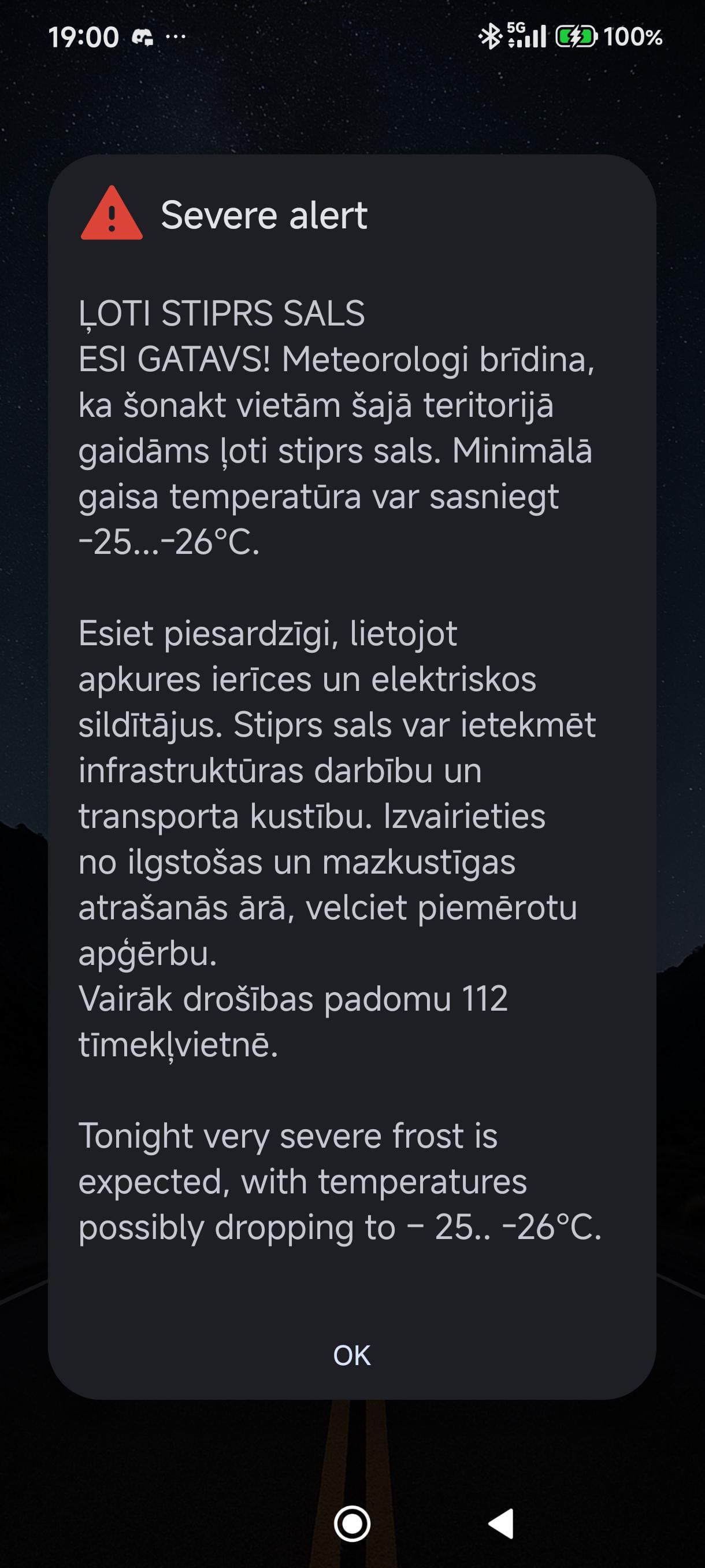 Mūsdienu vārgie cilvēciņi, atceros bērnībā -25 varēja uz skolu neiet un visu dienu pa kalniņu dragāt, ieskriet mājās pārvilkt sausas cepures, cimdus un atkal laukā, tagad pie labas ziemas sūta brīdinājumus.
