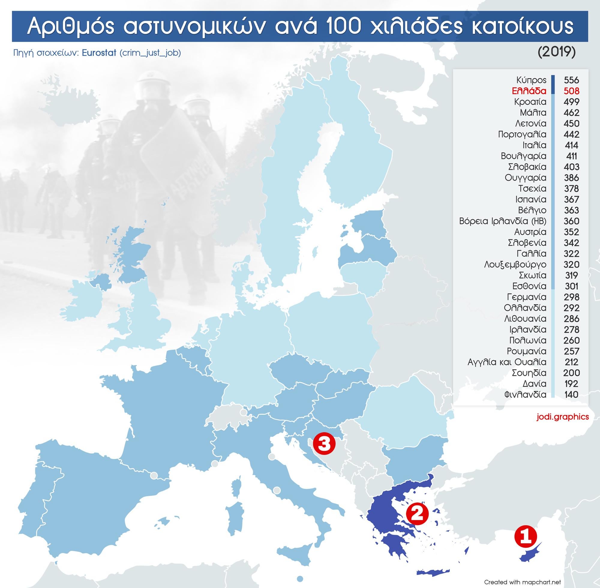 Griechenland liegt auch 2019 in der EU an zweiter Stelle bei der Zahl der Polizisten pro 100.000 Einwohner – Jo Di