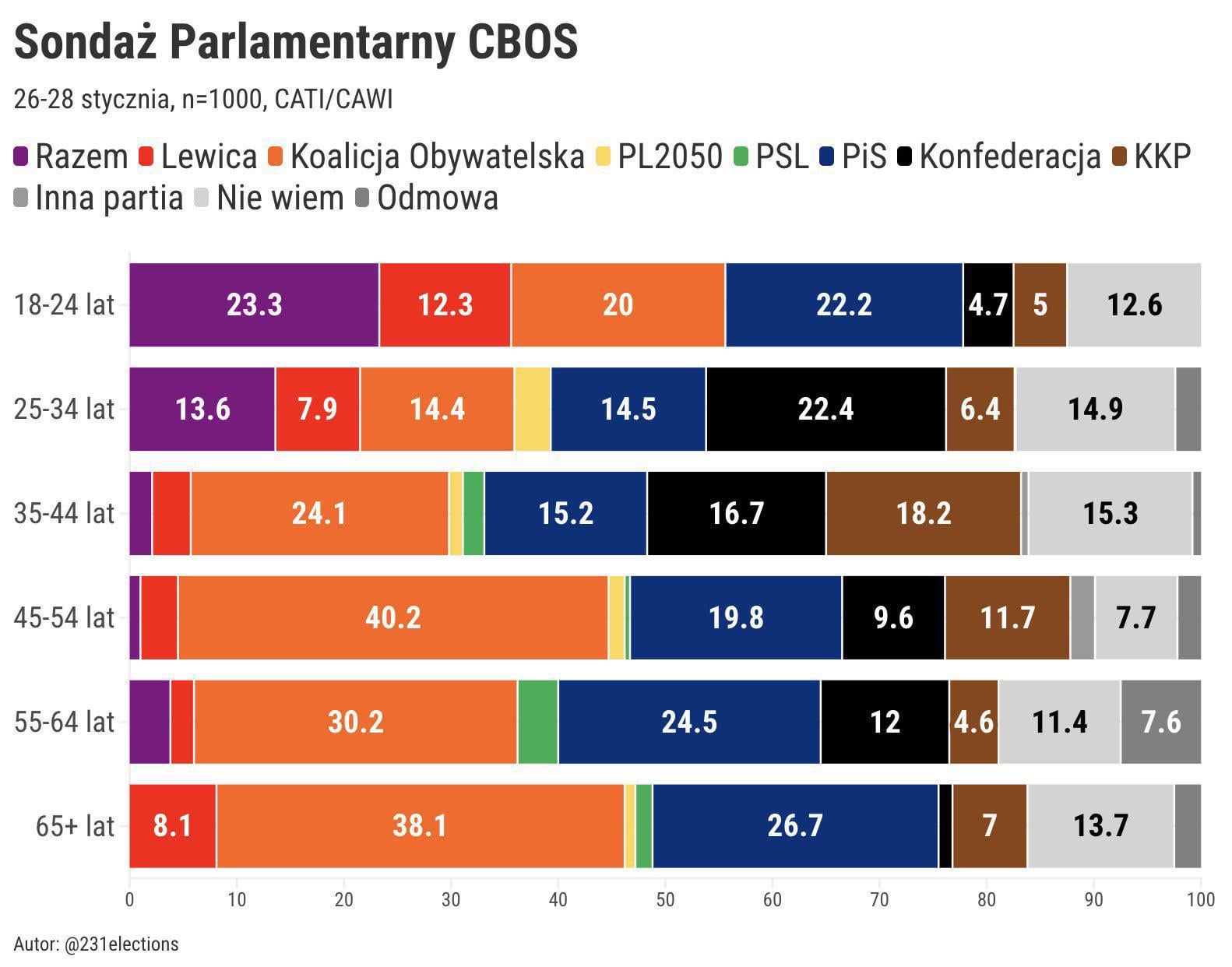 22.4% konfederacji w grupie 25-35 to do zrozumienia bo niskie podatki i w ogóle, ale 18% Braun w 35-45? Nieźle.
