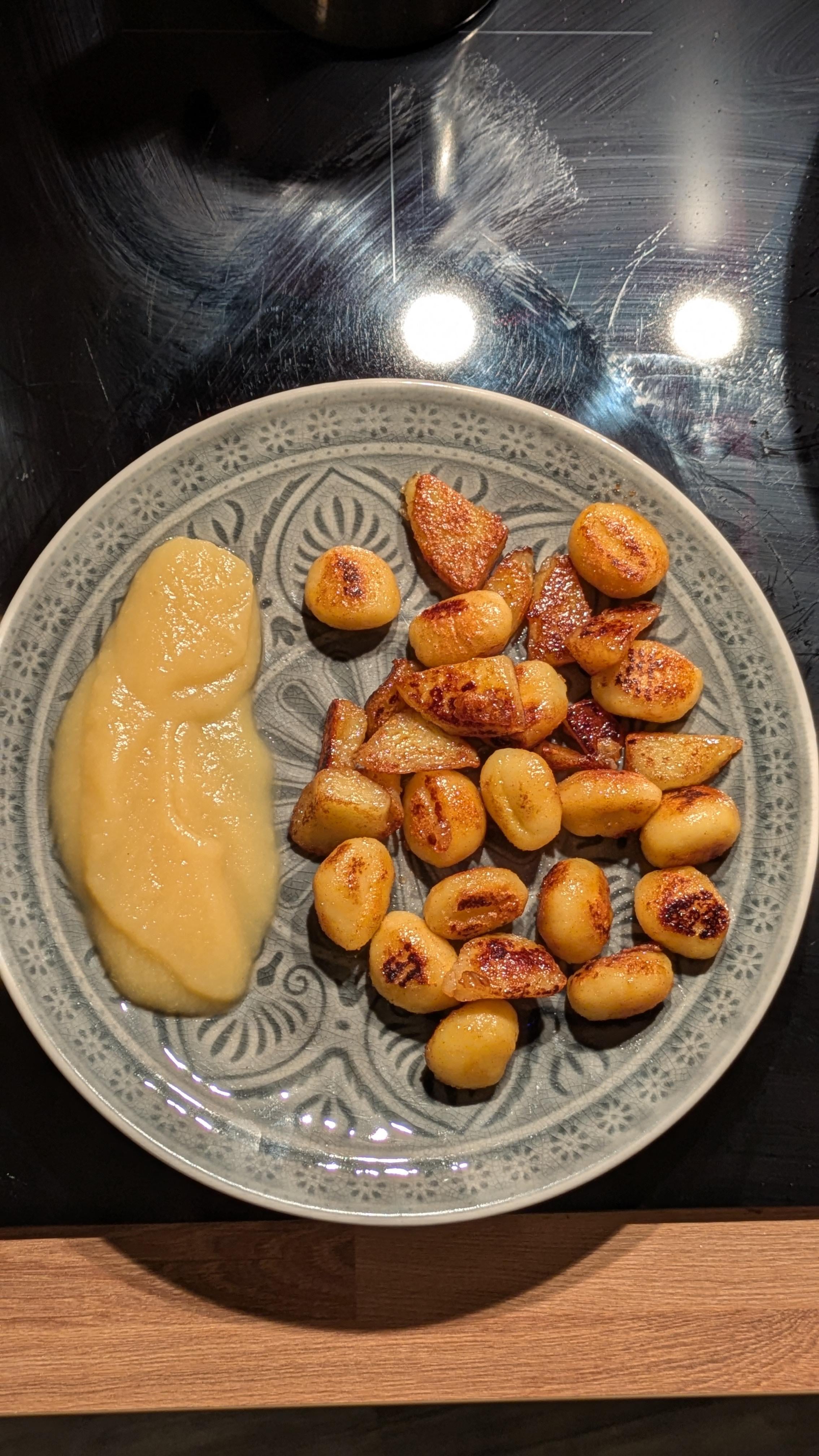Klingt gut, hatte ich so noch nie. Aber ist eigentlich ähnlich wie Schupfnudeln mit Apfelmus, was es bei meiner Familie immer gab.