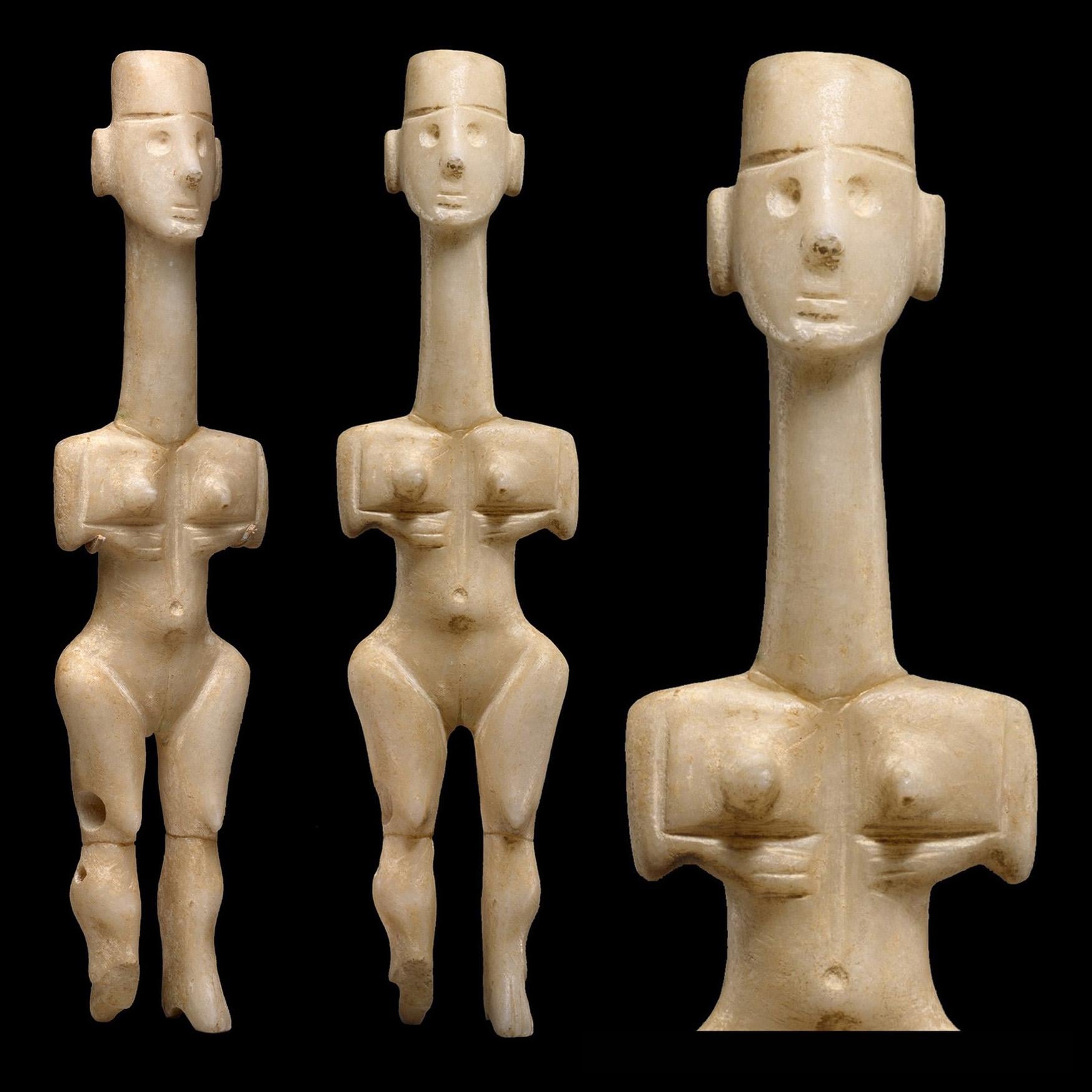 Kykladen-Frauenfigur aus Marmor, Plastiras-Typ. dem Metropolitan Museum Sculptor zugeschrieben (von Pat Getz-Gentle). Protokykladische I. Periode, ca. 3200 – 2800 v. Chr. Höhe: 21,6 cm. Das Metropolitan Museum of Art, New York, USA. (1750×1750)