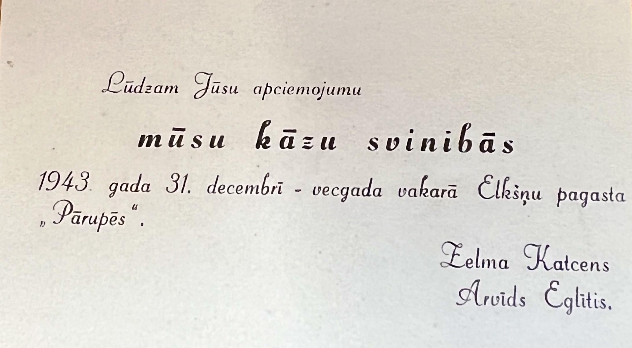 Ich habe das herausgefunden, als ich eine Kiste mit seinen Habseligkeiten durchgesehen habe, und bin dabei auf etwas gestoßen, von dem ich glaube, dass es sich um seine Hochzeitseinladung aus seiner ersten Ehe handelt. Ich hoffe auf Hilfe bei der Bestätigung, ob ich den Namen seiner Frau richtig als „Zelma Katcens“ verstehe.