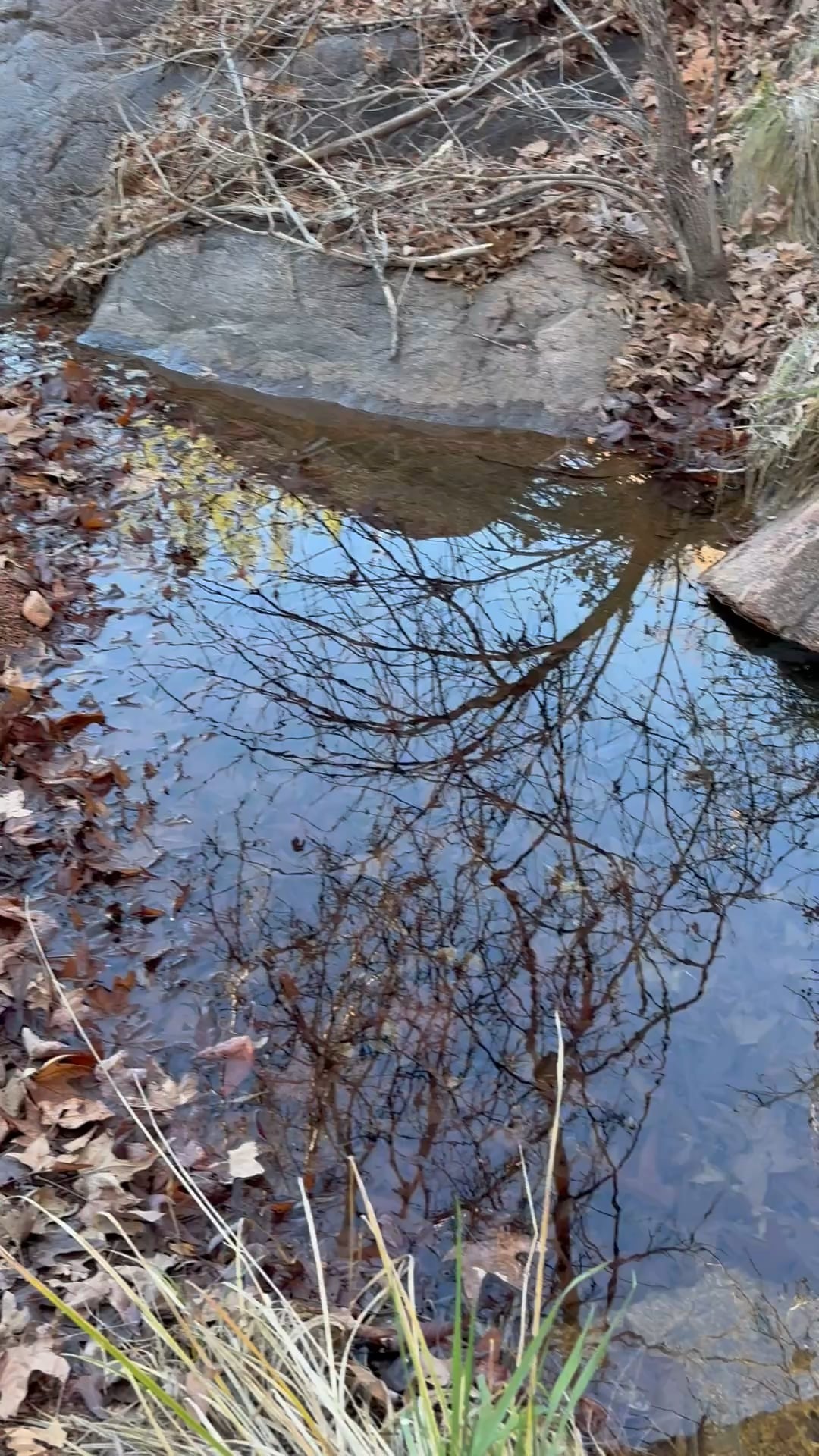 Unerwarteter, von einer Quelle gespeister Wasserfall, wie er gestern beim Wandern einen abgelegenen Bach hinauf gesehen wurde
