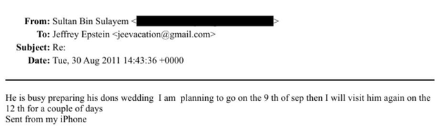 Die neuen E-Mails von Jeffrey Epstein wurden veröffentlicht. Eine Korrespondenz vom 30. August 2011 fand zwischen Epstein und seinem Freund, dem Geschäftsmann Sultan bin Sulaim aus den Vereinigten Arabischen Emiraten statt: