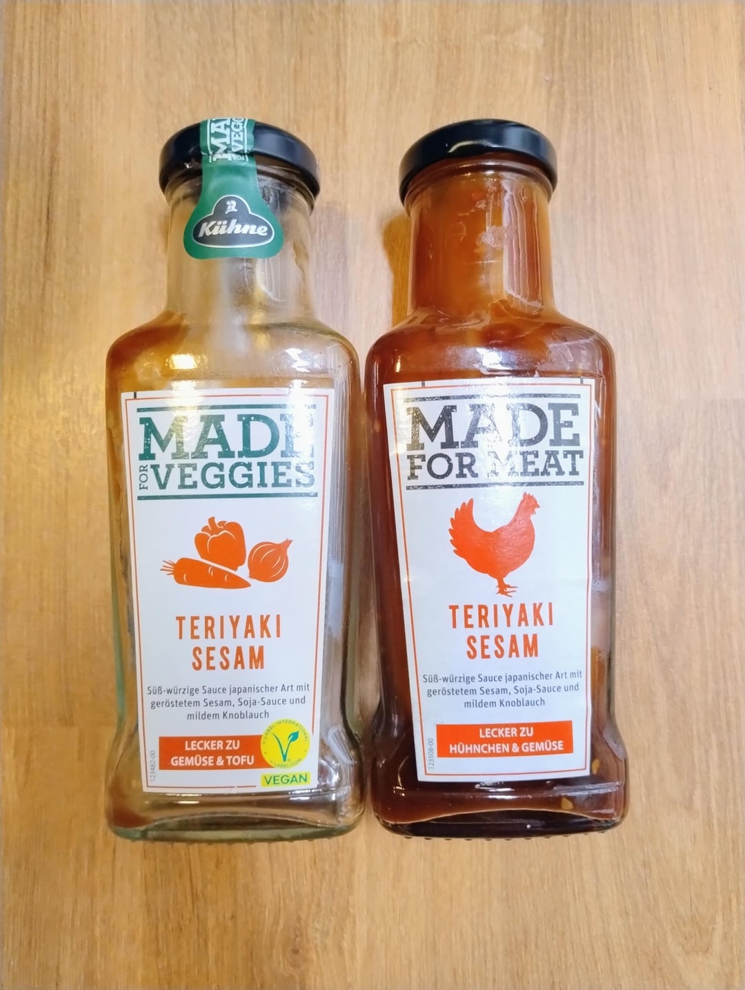 Das soll genau so sein. Veganer würden diese Sauce nie kaufen, wenn da Made for Meat drauf steht (logisch) und Leute, die eine vegane Ernährung verpönen, würden das nie kaufen, wenn Made for Veggie draufsteht. Also gibt es zwei Varianten, um beide Gruppen zu bedienen.