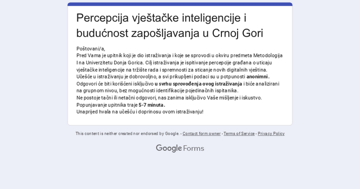 Pomoć studentkinji🙏 Kratka anketa o AI i zapošljavanju u Crnoj Gori