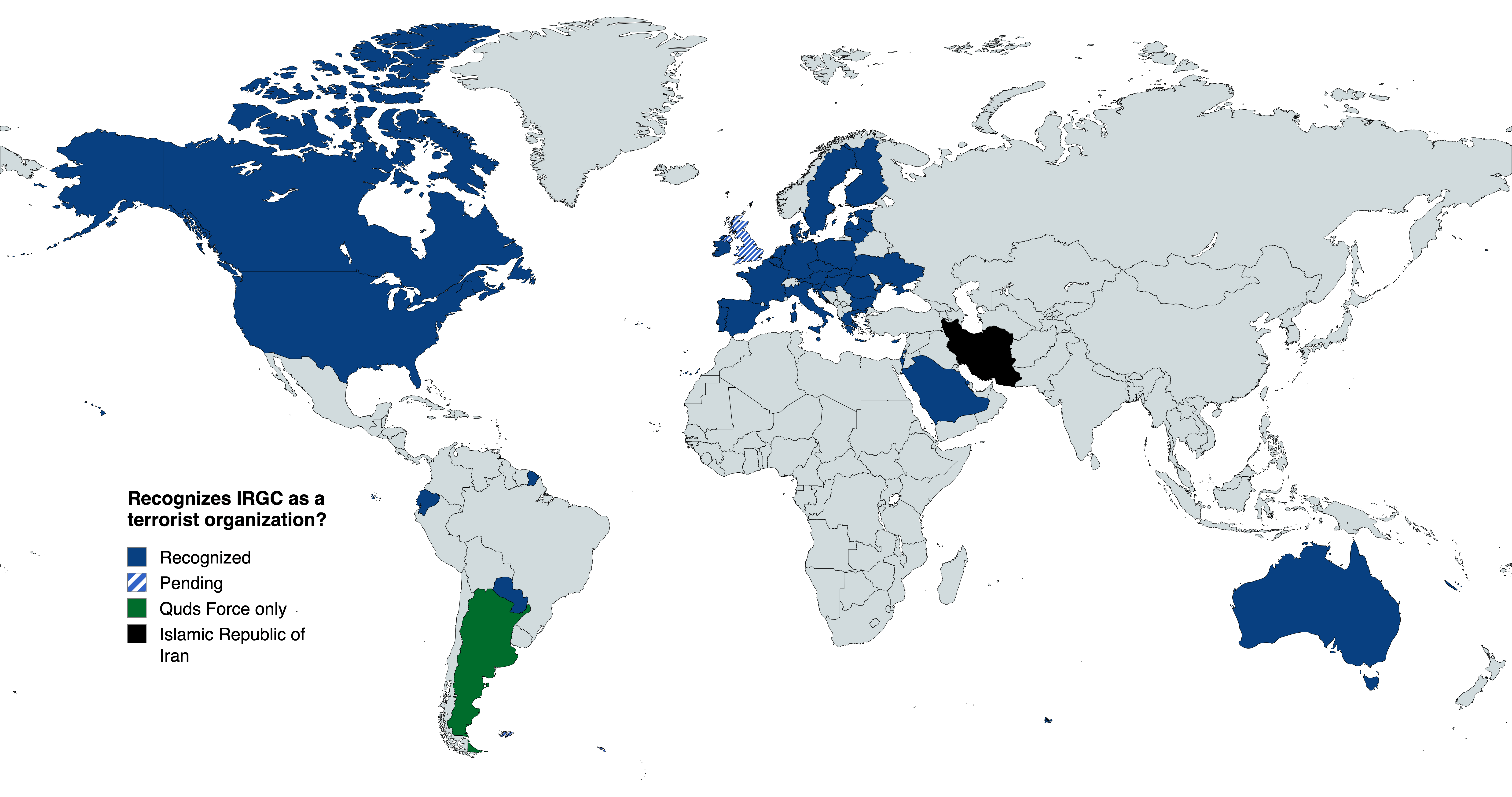 Newest addition to the map is Ukraine which recognized the IRGC as a terrorist organization today.