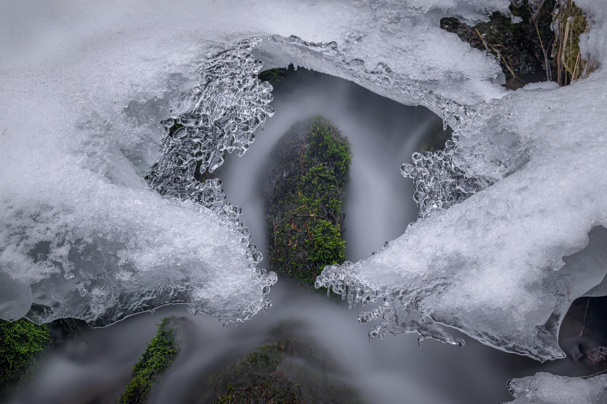 Im Sommer ist dieser kleine Bach von Glockenblumen und üppigem Grün gesäumt. Im Winter gibt es noch ein paar Grünflächen, aber fantastische Eisformationen haben die Show gestohlen!