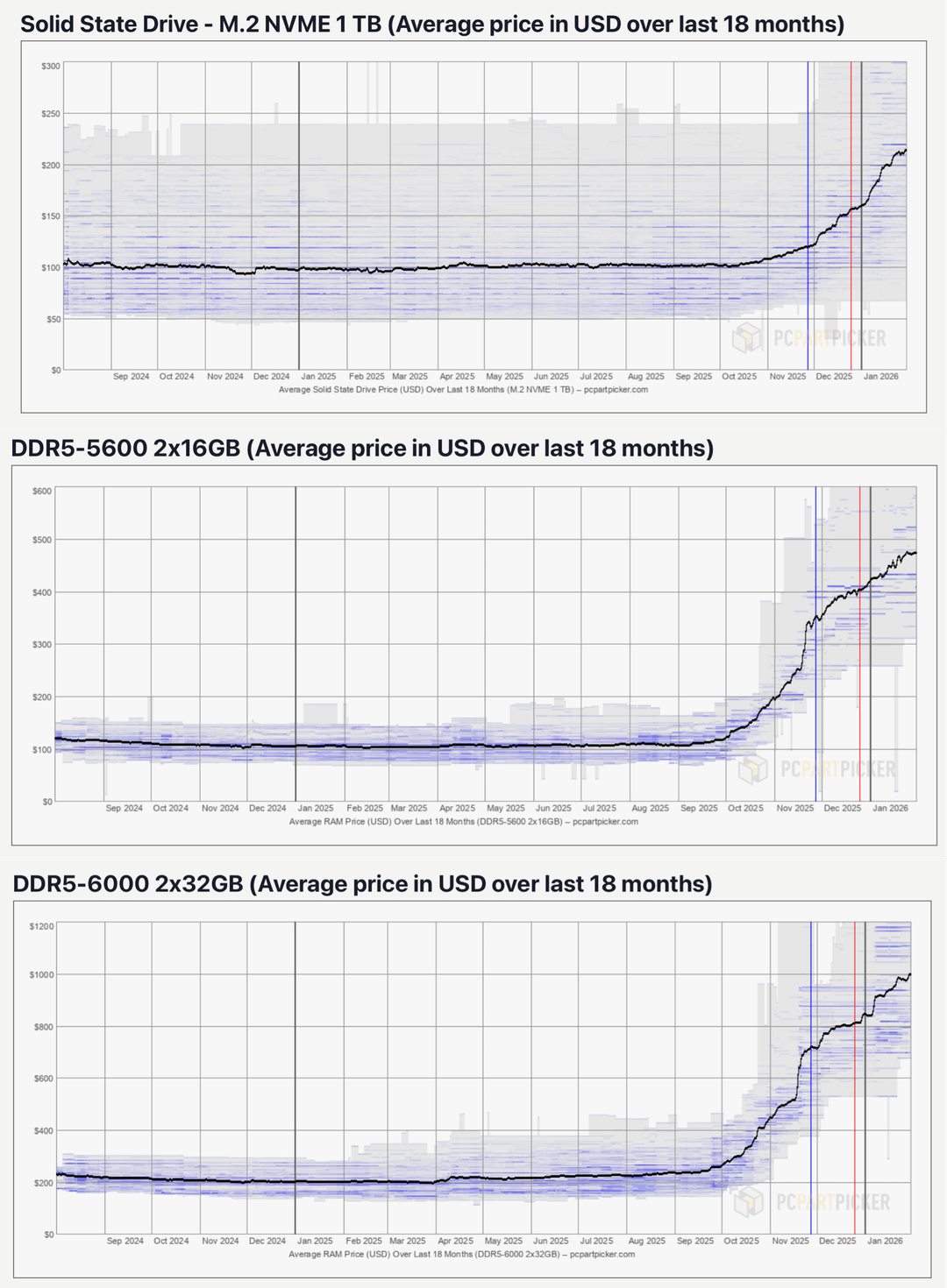 Es gibt ein Problem, dass Benutzer "Normal" Sie merken es noch nicht: Die Preise für alles rund um RAM-Chips und SSDs explodieren.