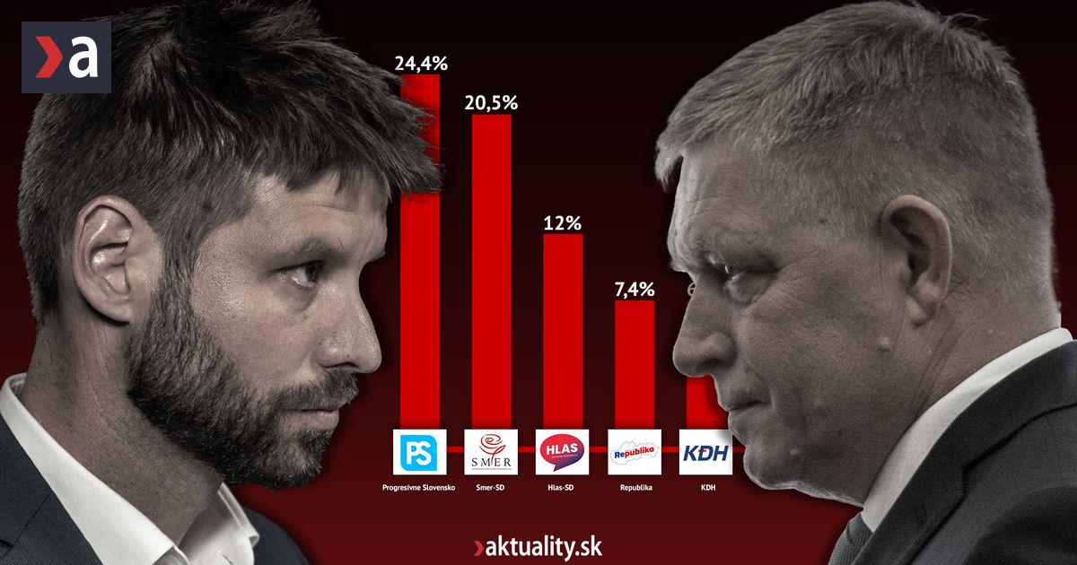 Die fortschrittliche Slowakei behält stabile Unterstützung und einen klaren Vorsprung vor Smer, der nicht durch ihr schnelles Wachstum, sondern durch die Schwächung des Regierungslagers entstanden ist. Die PS profitiert von „Brotthemen“, Inflation und Konsolidierung, und kann zentristische und nicht verankerte Wähler ansprechen. Es zieht vor allem ehemalige Hlas-Wähler, Teile von SaS, OĽaNO und Nichtwähler an. Analysten weisen darauf hin, dass es trotz der Spitzenposition zu leichten Rückgängen und Schrumpfungen des Wählerpotenzials und des Wählerkerns gekommen sei, der Grund könnten Benešs Dekrete sein, aber es sei noch kein klarer negativer Trend.