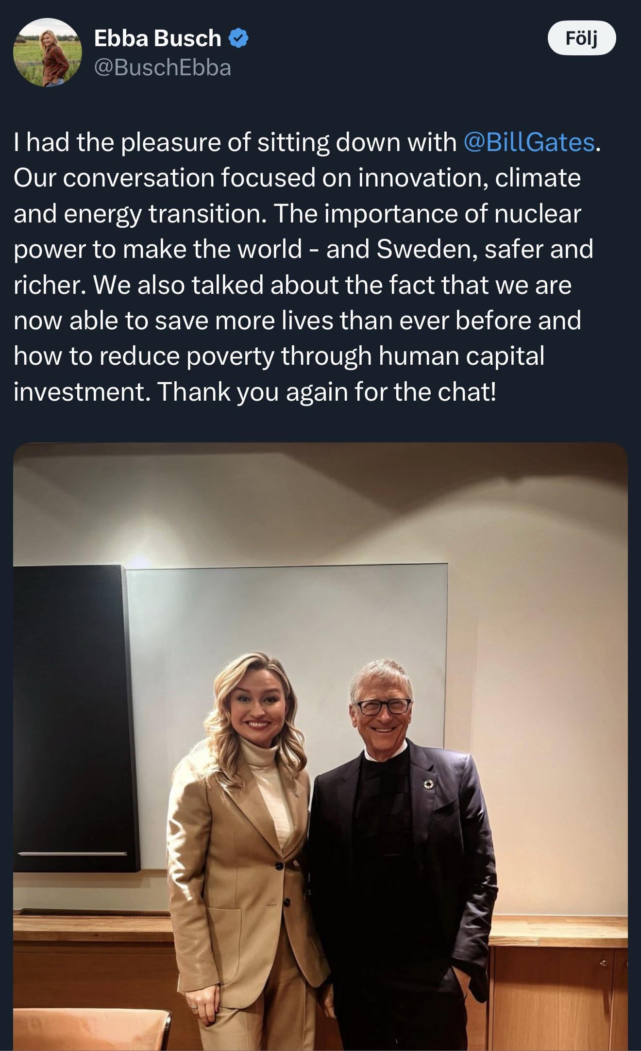 Bill Gates mannen bakom COVID och har hängt en massa med Epstein. Skön lirare att fota sig med.