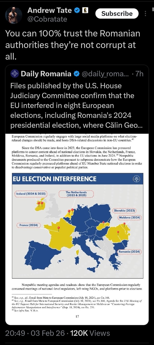 Vielen Dank an Staatsanwältin Profira Cezar, die, anstatt den Kindesmissbraucher Andrew Tate strafrechtlich zu verfolgen, seine Reisebeschränkungen ohne Gerichtsbeschluss aufhob