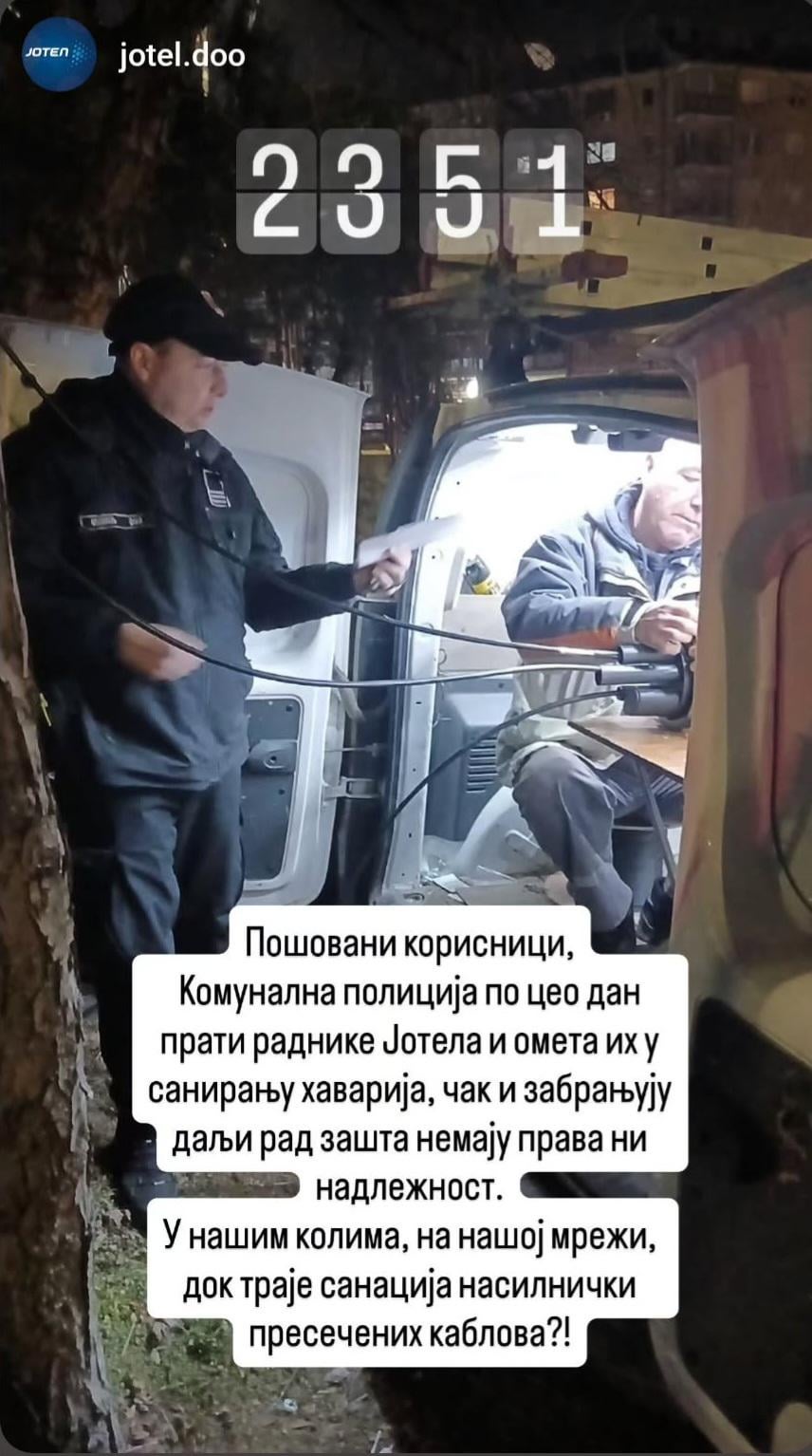 In Niš hat Jotel illegal die Kabel durchtrennt, um die Telekom zu installieren. Die Polizei verfolgt die Jotel-Arbeiter und stört ihre Arbeit.