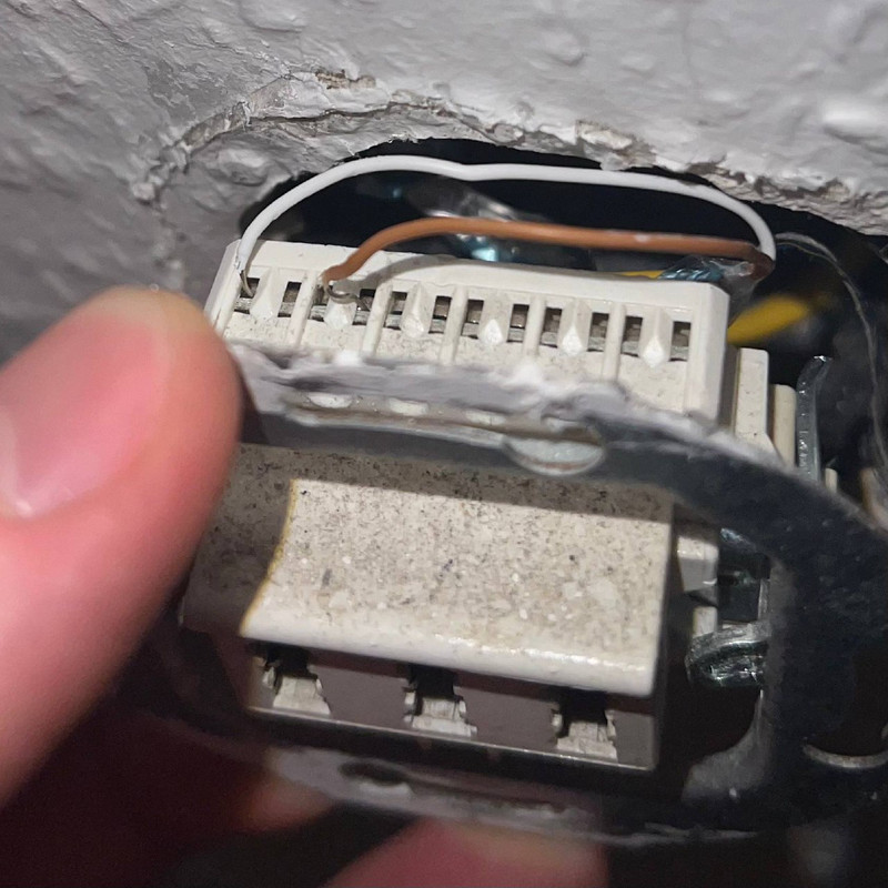Am nächsten Tag schickt die Hausverwaltung einen Elektriker und er fertigt vor meinen Augen ein komplett neues Kabel von meiner TAE-Buchse (der einzigen in meiner Wohnung, korrekte Stifte 1/2 oder La/Lb verwendet) durch den Balkon hinunter in den Keller und verbindet es mit dem richtigen Leitungsschalter im APL (wo sich die TAE-Attrappe befand), alles vor meinen Augen, aber immer noch kein Glück. Offensichtlich sagt er, dass auch seine Arbeit erledigt sei und geht. Hier sitze ich schon seit mehr als einem Monat verwirrt ohne Internet und weiß nicht, was überhaupt die nächsten Schritte sein könnten. Die ISP-Hotline kann nicht weiterhelfen, außer einen Neustart oder das Zurücksetzen des Routers auf die Werkseinstellungen vorzuschlagen, und der Elektriker weiß nicht, warum er kommen sollte, obwohl er gerade ein neues Kabel verlegt hat.