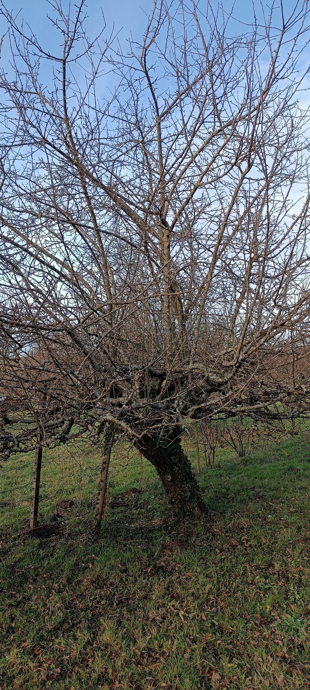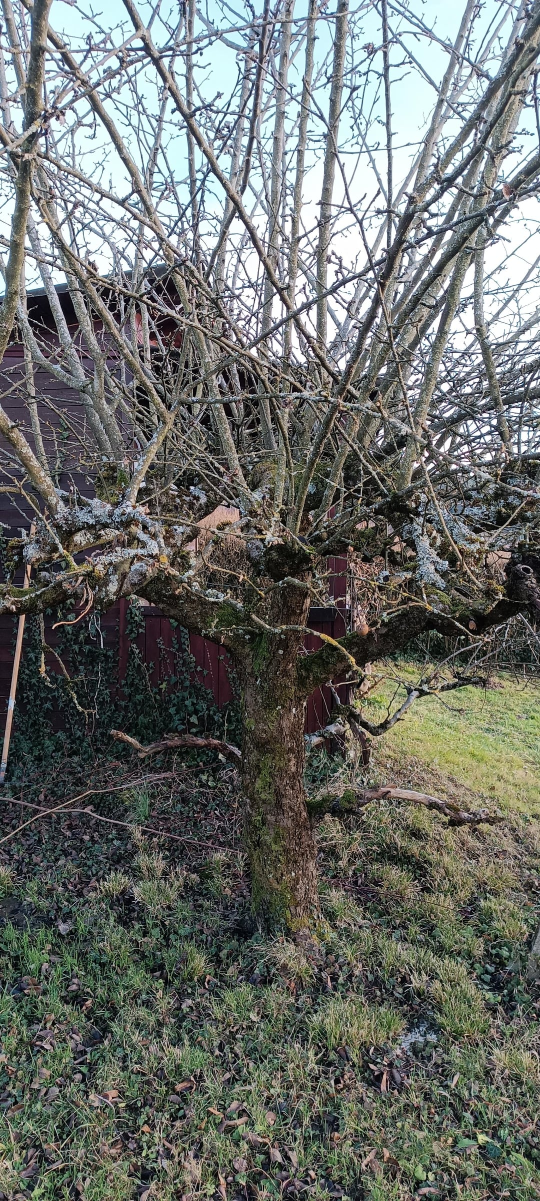 Würde wasserschosser rausnehmen und dem ganzen wieder etwas Struktur geben –> klare Stammverlängerung. Und etwas ausrichten. Dann würde ich schauen wie er über die Vegetationsperiode reagiert und dann im Zweifel nochmal schneiden um den wuchs von schossern einzudämmen.