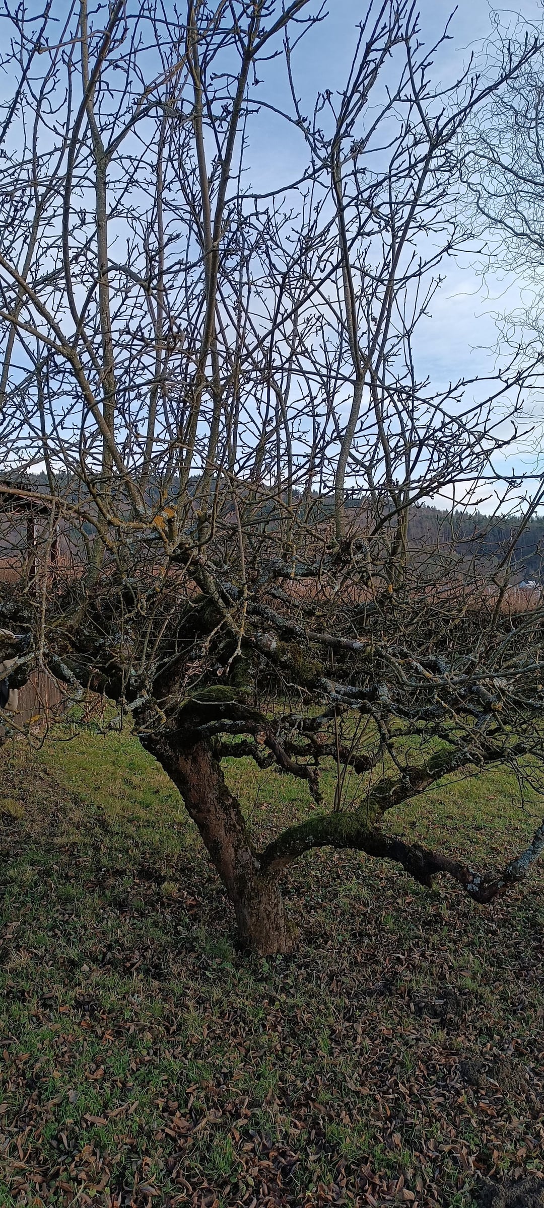 Also…diese Bäume wurden in der Vergangenheit schon zu stark geschnitten, sieht man an den geraden Wasserschossen. Lies weiter im Internet und schau ein paar Videos wie genau Obstbäume schneiden …..ich schneid meine zwischen 5. ….bis 7. März, wegen dem abnehmenden Mond. Es wird sehr schwierig, da schon viel kaputtgemacht wurde bei den Bäumen und sie alt sind….bitte Wundpaste auf die Schnittstellen und auf saubere Schneidekanten achten ect. Es kann auch sein, das sie Würme haben werden, falls es Äpfel gibt….dann im Winter 2026 mit Winteröl spritzen oder einen Leimring am Stamm….Weniger schneiden ist besser und nicht einfach einkürzen nach Lust und Laune. Wasserschosse weg und dann weiter wie in den Videos….