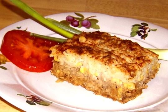 MSG und Sojasauce anstatt Worchestershire, dick viel Cheddar in den Kartoffelbrei. Tomatenmark in die Hacksauce, am Ende TK-Erbsen rein.