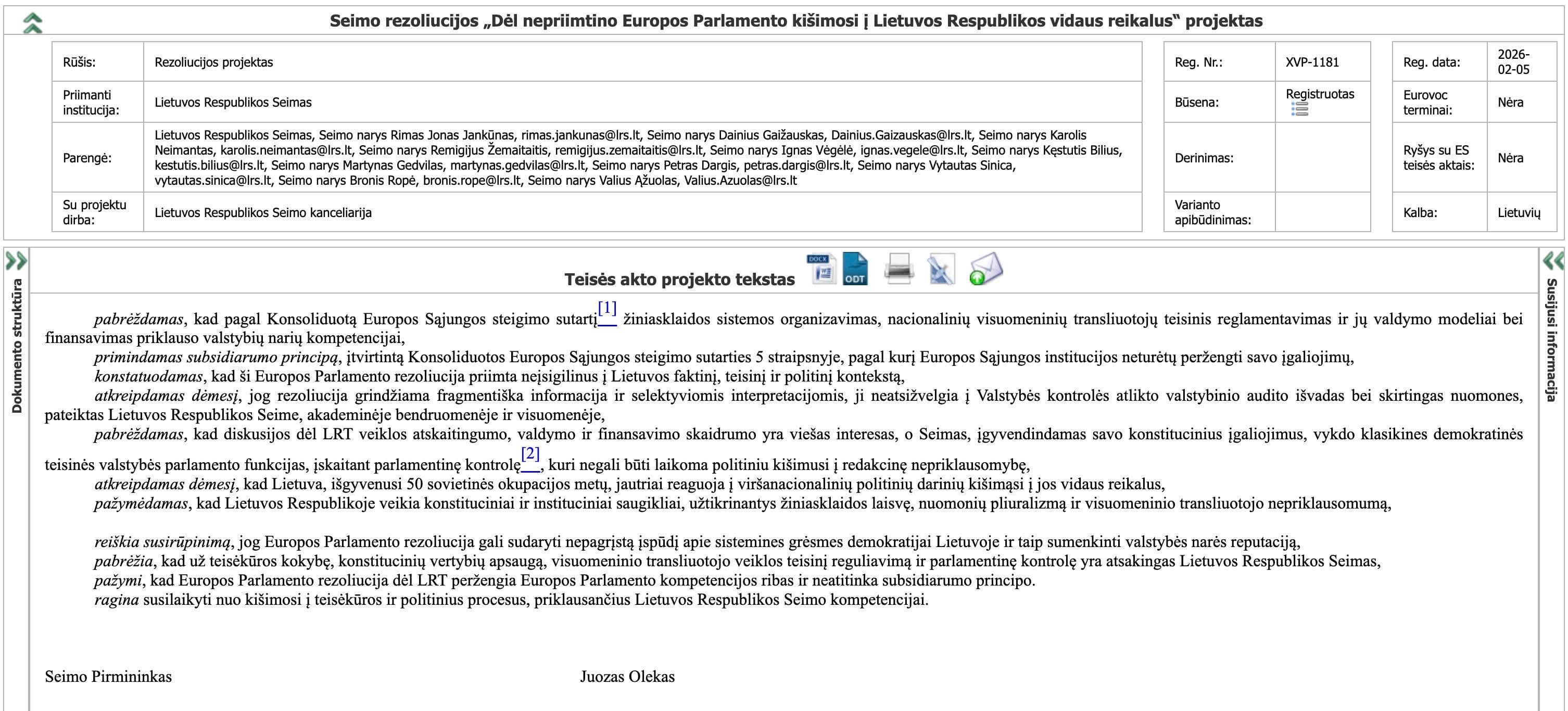 [https://e-seimas.lrs.lt/portal/legalAct/lt/TAP/816d5771027211f1b9baf24db8ed7e40?positionInSearchResults=0&searchModelUUID=df10df8b-8cda-4873-8d93-7719537d11bd](https://e-seimas.lrs.lt/portal/legalAct/lt/TAP/816d5771027211f1b9baf24db8ed7e40?positionInSearchResults=0&searchModelUUID=df10df8b-8cda-4873-8d93-7719537d11bd)