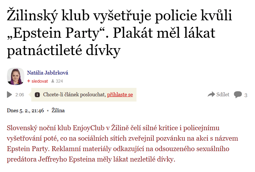 https://www.novinky.cz/clanek/zahranicni-evropa-zilinsky-klub-vysetruje-policie-kvuli-epstein-party-plakat-mel-lakat-patnactilete-divky-40561353 https://i.redd.it/3244zjao0rhg1.png Von PresentJournalist805