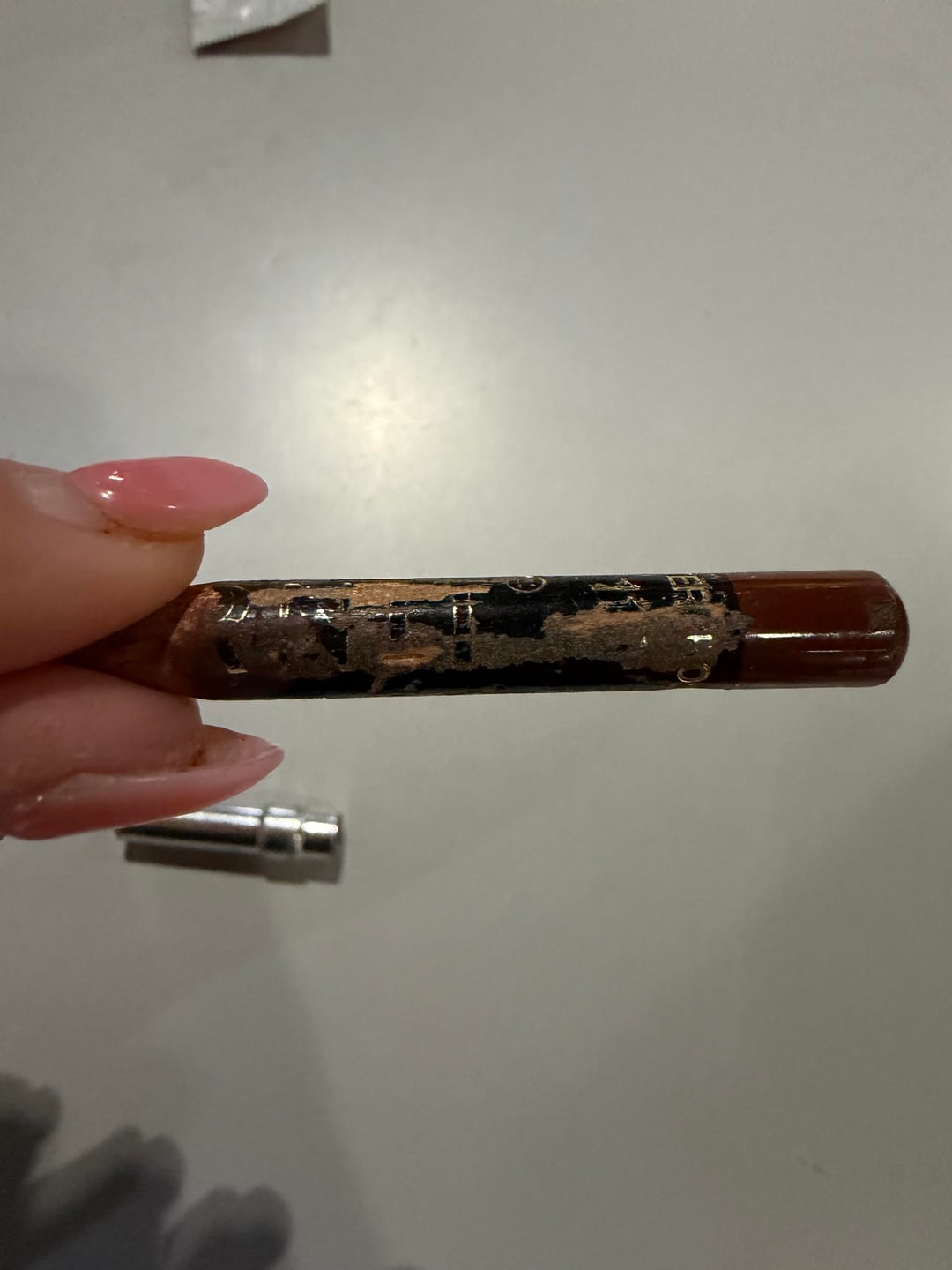 Hallo! Ich habe diesen Lipliner, den ich zwischen 1980 und 1990 in Aachen, Deutschland, gekauft habe. Ich versuche herauszufinden, von welcher Marke es sein könnte. So sieht es aus: Es hat eine silberne Kappe, einen goldenen Schriftzug und die Aufschrift „RNIT“, es ist wasserdicht und es steht, glaube ich, für den Farbton 1G5 drauf. Danke schön.