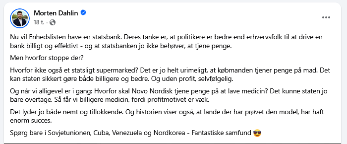 Jeg synes nu også der er gode argumenter imod en statsbank, det er ikke bare “hurr durr -kommunisme er dårligt”.