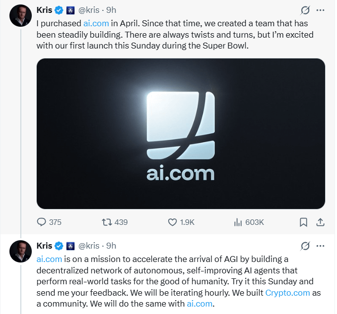 >Marszalek will lead both ai.com and Crypto.com as CEO.